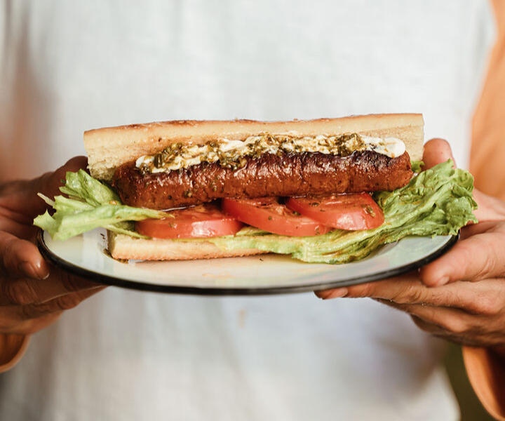 Our sausages are well spiced with great texture and flavour, making them a versatile addition to any meal. Use as is or sliced on pizzas and sandwiches. Perfect chopped up as a meat alternative in stews and stir fries.
